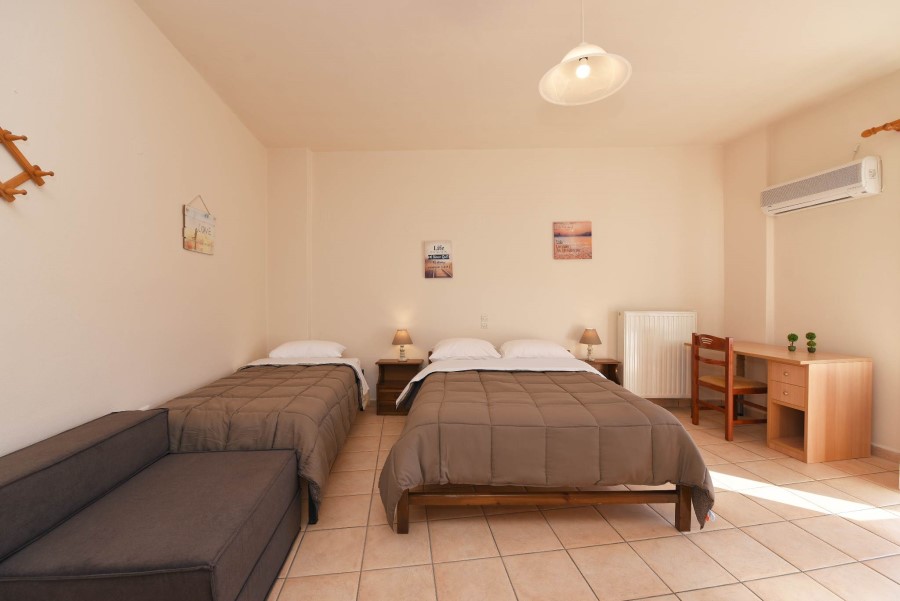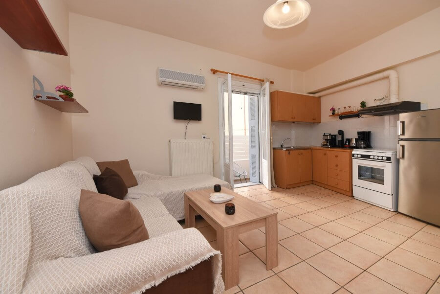 Η μέγιστη χωρητικότητα του Διαμερίσματος 1 είναι για 6 άτομα, γεγονός που το καθιστά δημοφιλή επιλογή για οικογένειες που αναζητούν άφθονο χώρο και ιδιωτικότητα. Το διαμέρισμα αποτελείται από δύο κρεβάτια και έναν καναπέ, δύο ιδιωτικά μπάνια με ντουζιέρα, ιδιωτικό μπαλκόνι, κουζίνα και όλες τις σύγχρονες ανέσεις που θα χρειαστείτε ποτέ.