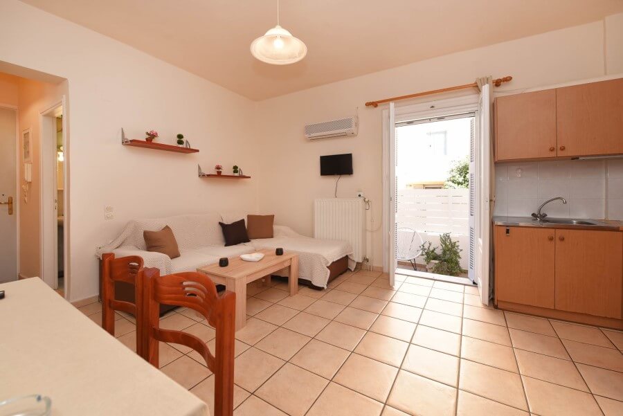 Αυτό το μοντέρνο και βολικό διαμέρισμα προσφέρει την τέλεια επιλογή για τις χαλαρωτικές διακοπές σας. Ολόκληρο το διαμέρισμα είναι 57 τετραγωνικά μέτρα με βεράντα και μπαλκόνι. Το Διαμέρισμά Νο1 προσφέρει όλες τις παροχές που απαιτούνται για να εξασφαλίσετε την άνετη διαμονή σας στη Σύρο, όπως πετσέτες, προϊόντα περιποίησης, στεγνωτήρα μαλλιών, κλιματισμό, πρόσβαση Wi-Fi, τηλεόραση επίπεδης οθόνης, 2 μπάνια, 1 διπλό κρεβάτι, 1 μονό κρεβάτι και έναν καναπέ-κρεβάτι.ΚΑΝΕΤΕ ΚΡΑΤΗΣΗ